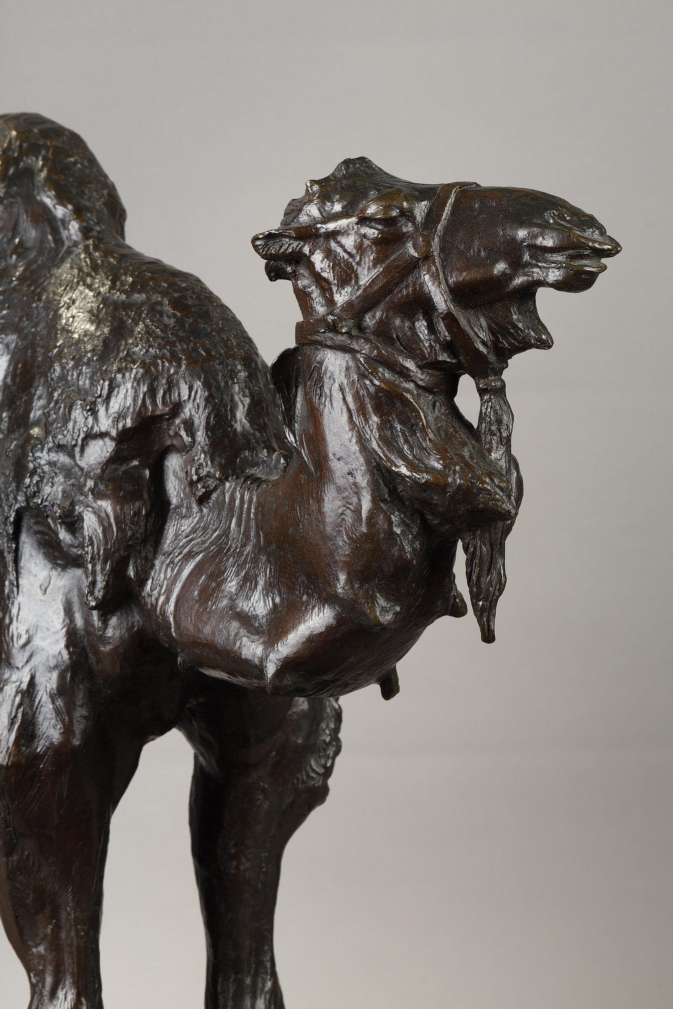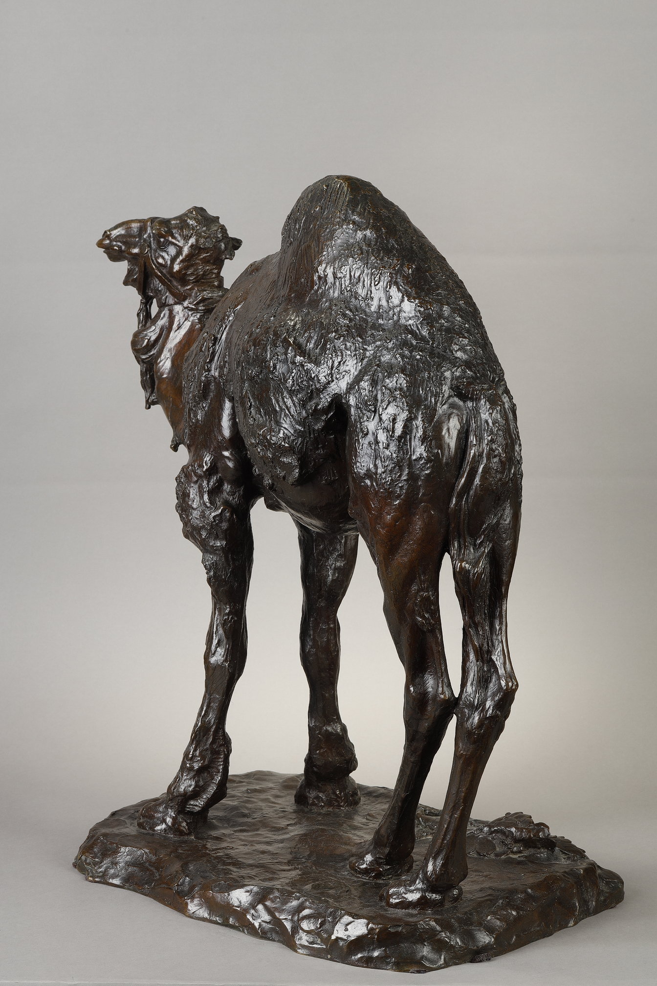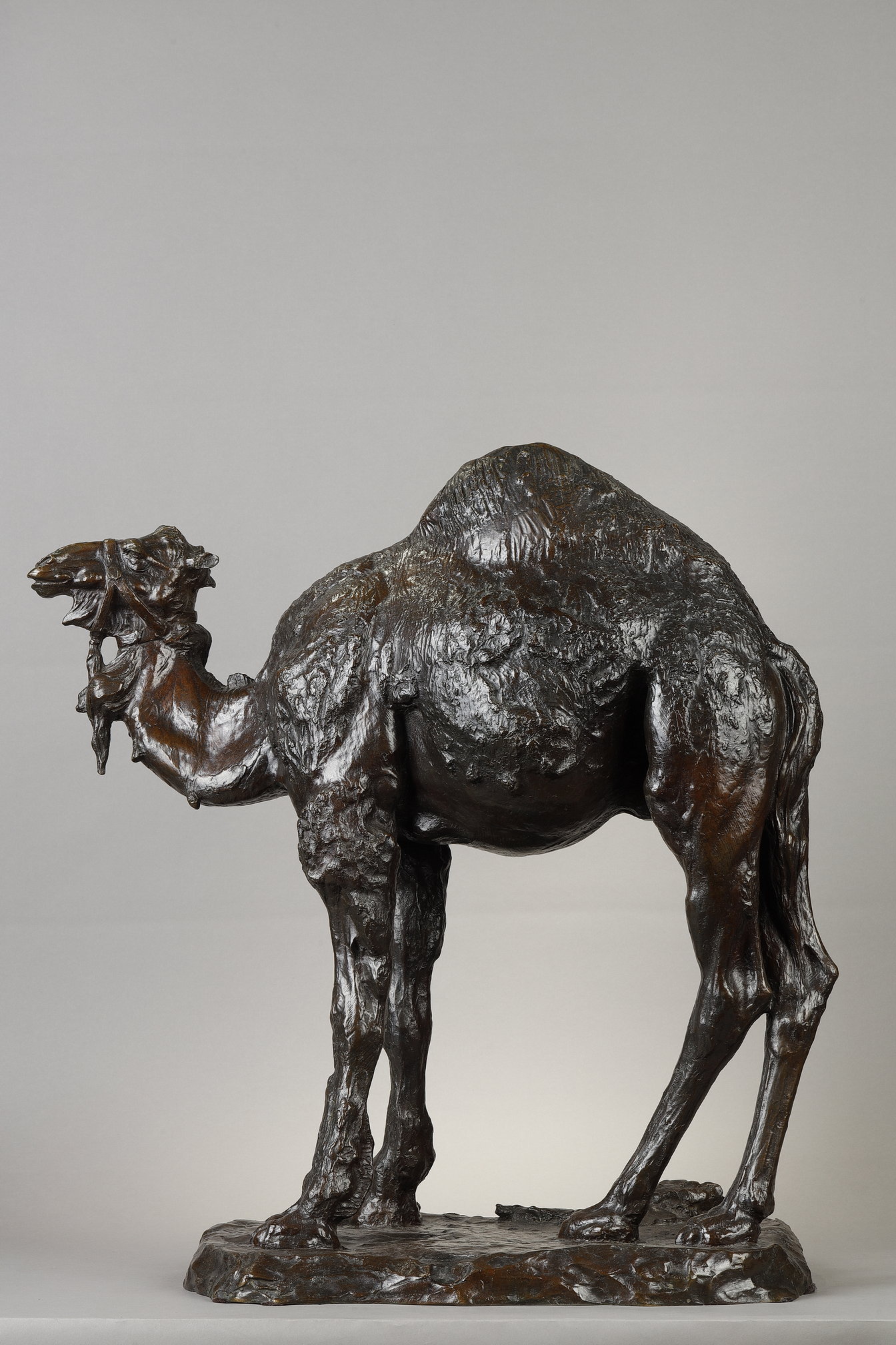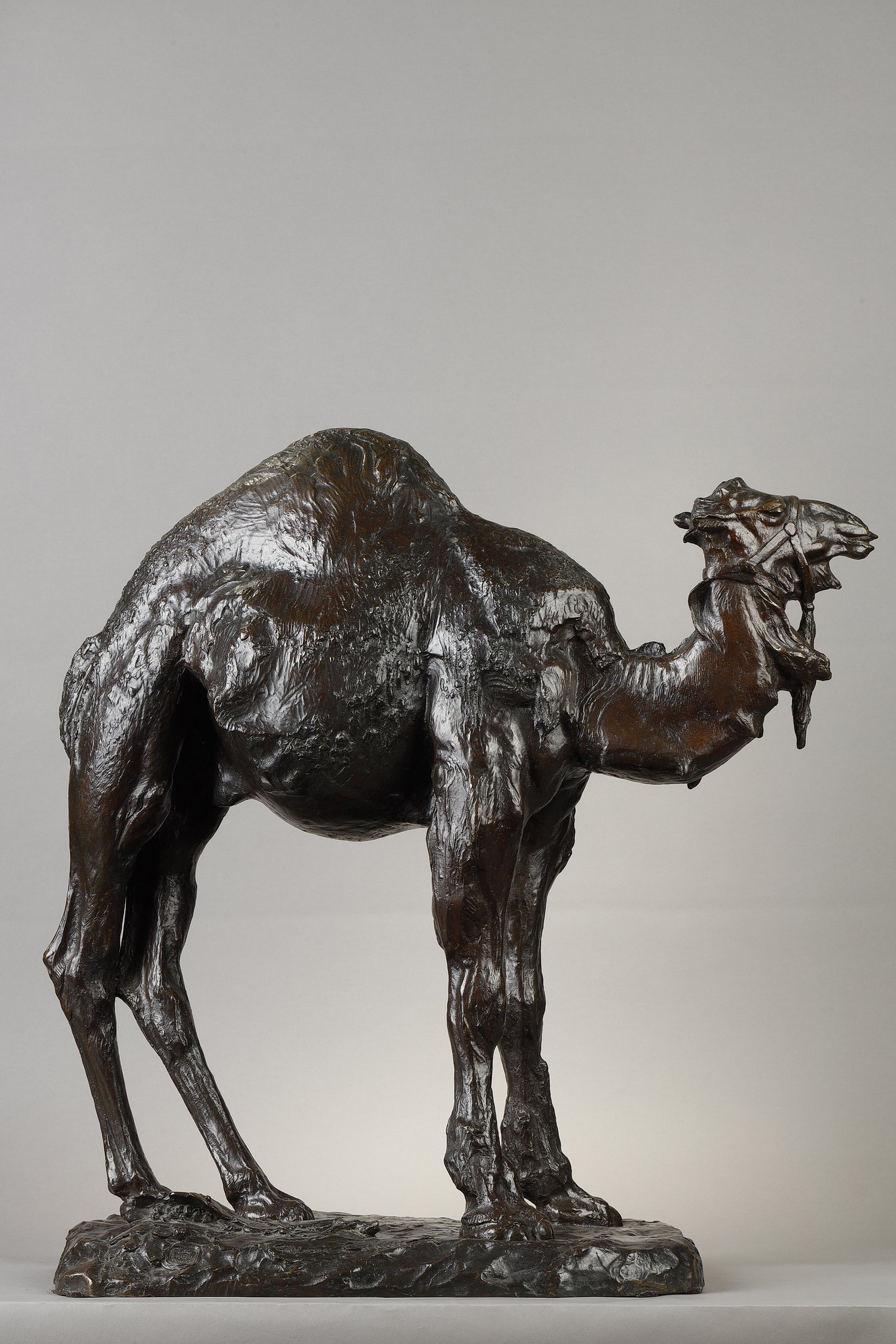 This particular sculpture, cast using the lost-wax technique by the renowned founder C. Valsuani, was awarded a gold medal at the 1922 Salon de Paris. The piece stands out for its vibrant modelling, in which every texture and muscle of the dromedary is rendered with striking realism. The use of a dark patina enhances the interplay of shadow and light across the surface, creating a dramatic sense of volume and movement.