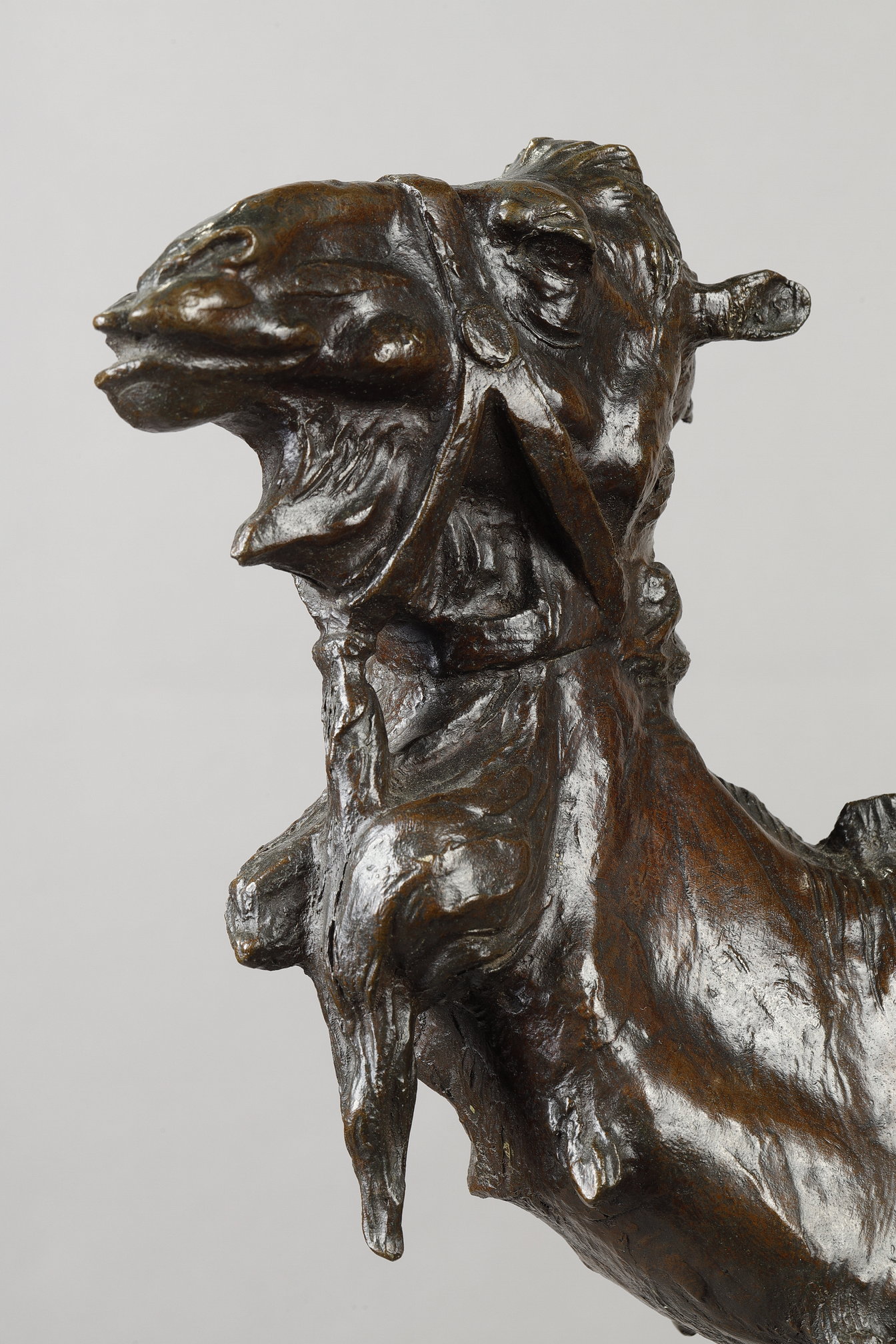 Unlike more static representations, Collin’s Dromedary preserves the spontaneity and dynamism of clay modelling. The tactile surface treatment, with its subtle variations and roughness, evokes the living presence of the animal while maintaining a sense of classical monumentality.