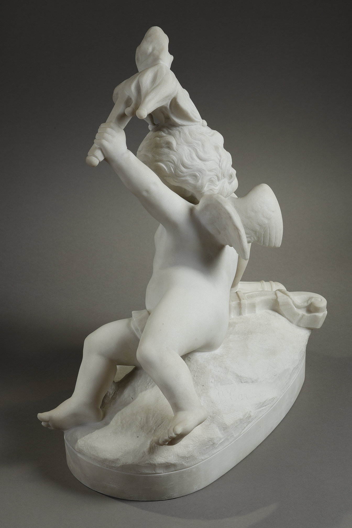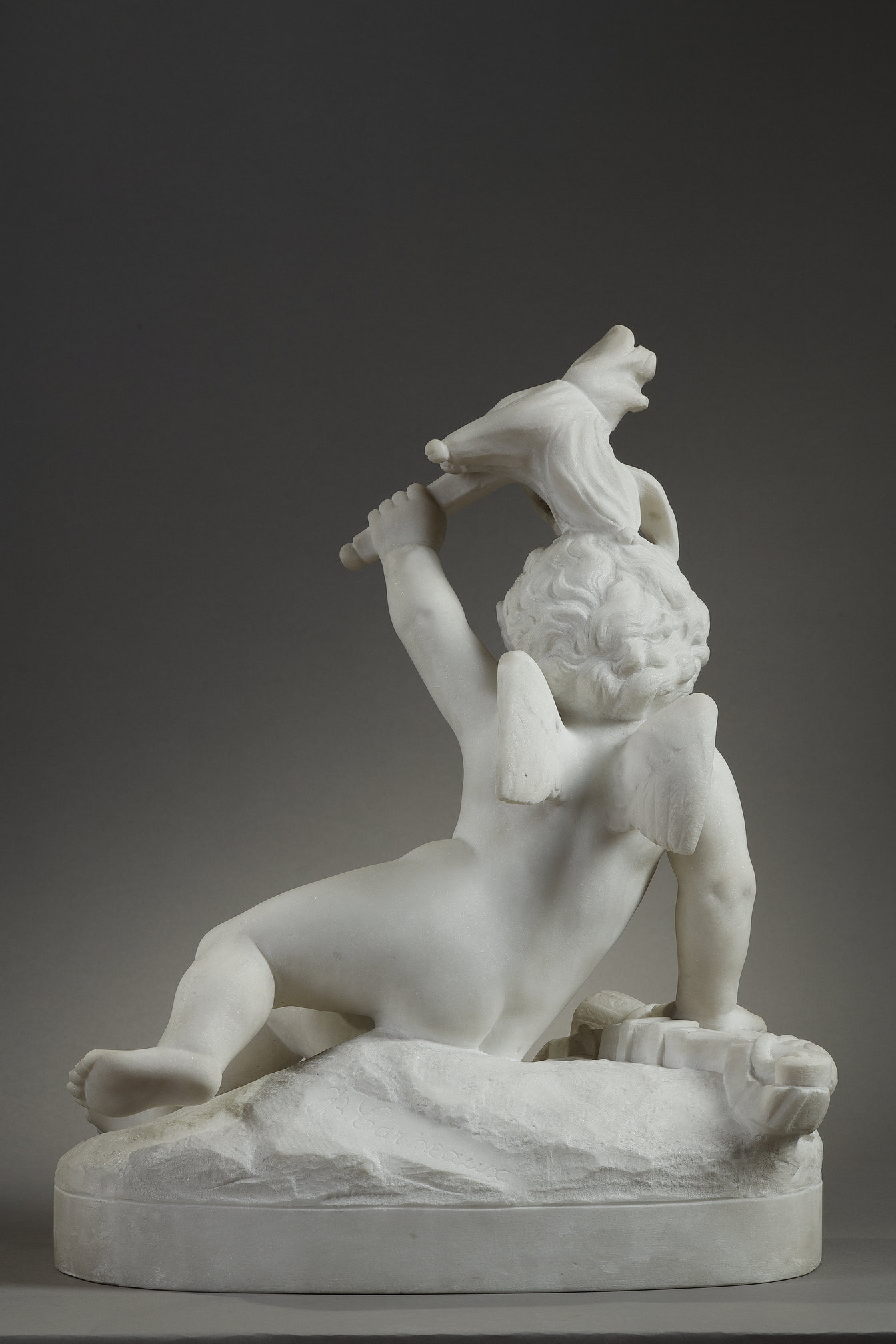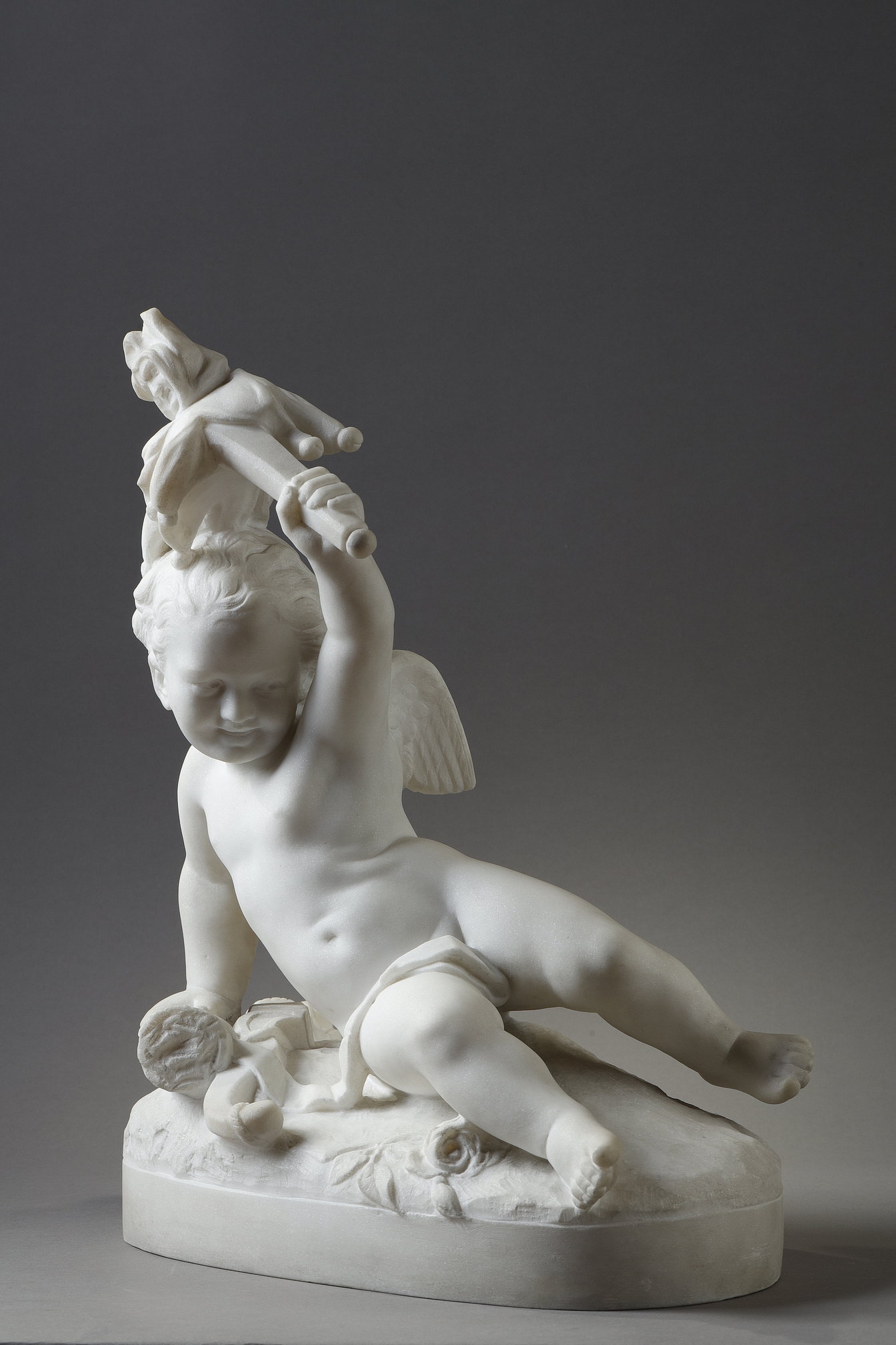 Cette sculpture en marbre, intitulée Amour à la Folie, illustre pleinement le génie artistique de Jean‑Baptiste Carpeaux. Il s’agit de l’un des neuf fragments indépendants issus du groupe monumental La Danse (1868), réalisé pour la façade de l’Opéra Garnier à Paris.