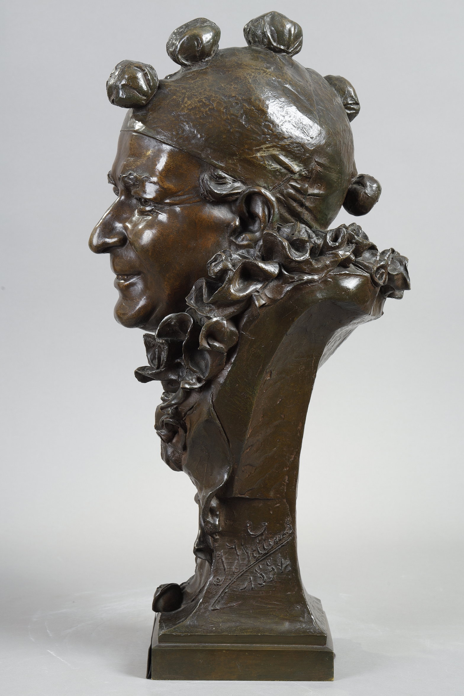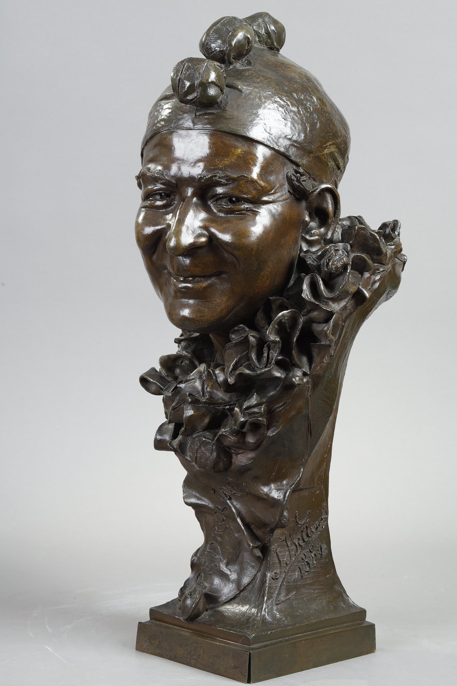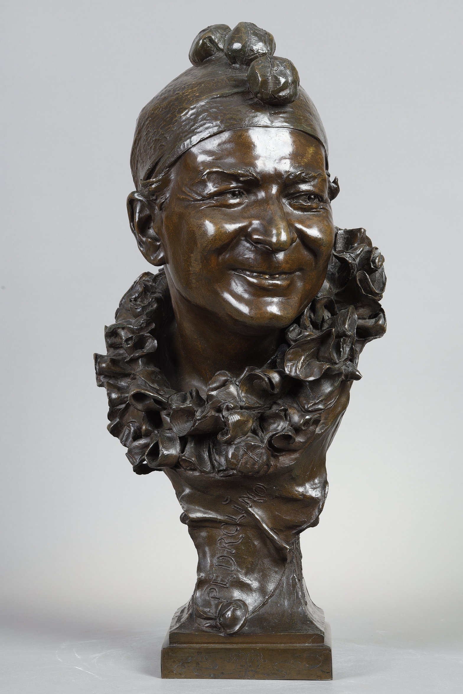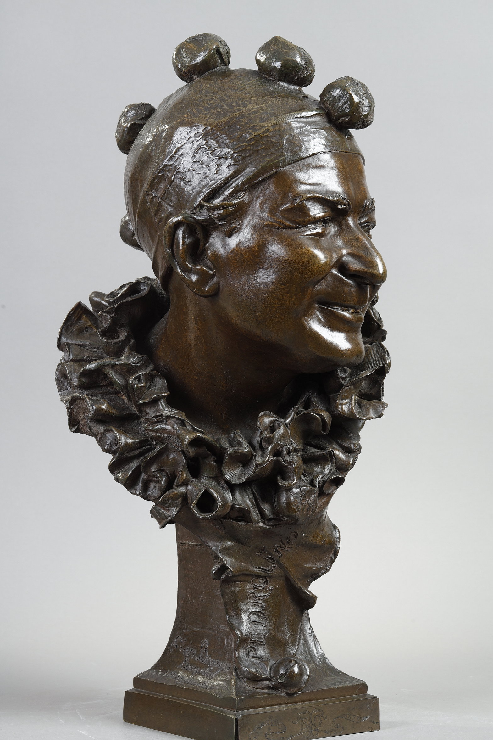 Pedrolino appartient à un ensemble de bustes célébrant les figures du théâtre, du folklore et du carnaval — tels Triboulet, Bouffon ou L’Oiseleur — réalisés au sommet de la collaboration entre Willems et la Compagnie des Bronzes (1882-1884). Témoignage rare du réalisme belge de la fin du XIXe siècle, cette œuvre associe virtuosité technique et âme théâtrale avec une profondeur saisissante.