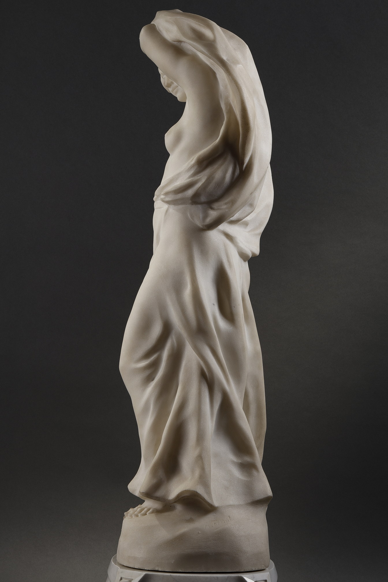 The Dawn exemplifies Finot’s mastery at uniting allegory, naturalism, and decorative finesse. It captures the fleeting transition between night and day—shadow and light, dream and awakening—encapsulated in the delicate poetry of white marble.